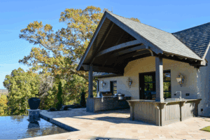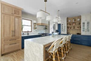 A graceful expansion reimagines the primary suite with vaulted ceilings, spa-like bath, and a stone fireplace study. Thoughtful reconfigurations deliver symmetry, flow, and storage while preserving the home’s charm and character in a naturally balanced new wing.