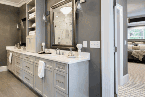 A downtown transformation turning underused rooms into a serene primary suite—complete with spa shower, elegant vanity, and secondary laundry—where urban convenience meets peaceful retreat.