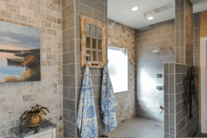 An innovative open-air shower designed a decade ahead of its time—bright, accessible, and glass-free. This timeless bath design by Kerl Design blends function, beauty, and comfort with lasting impact.