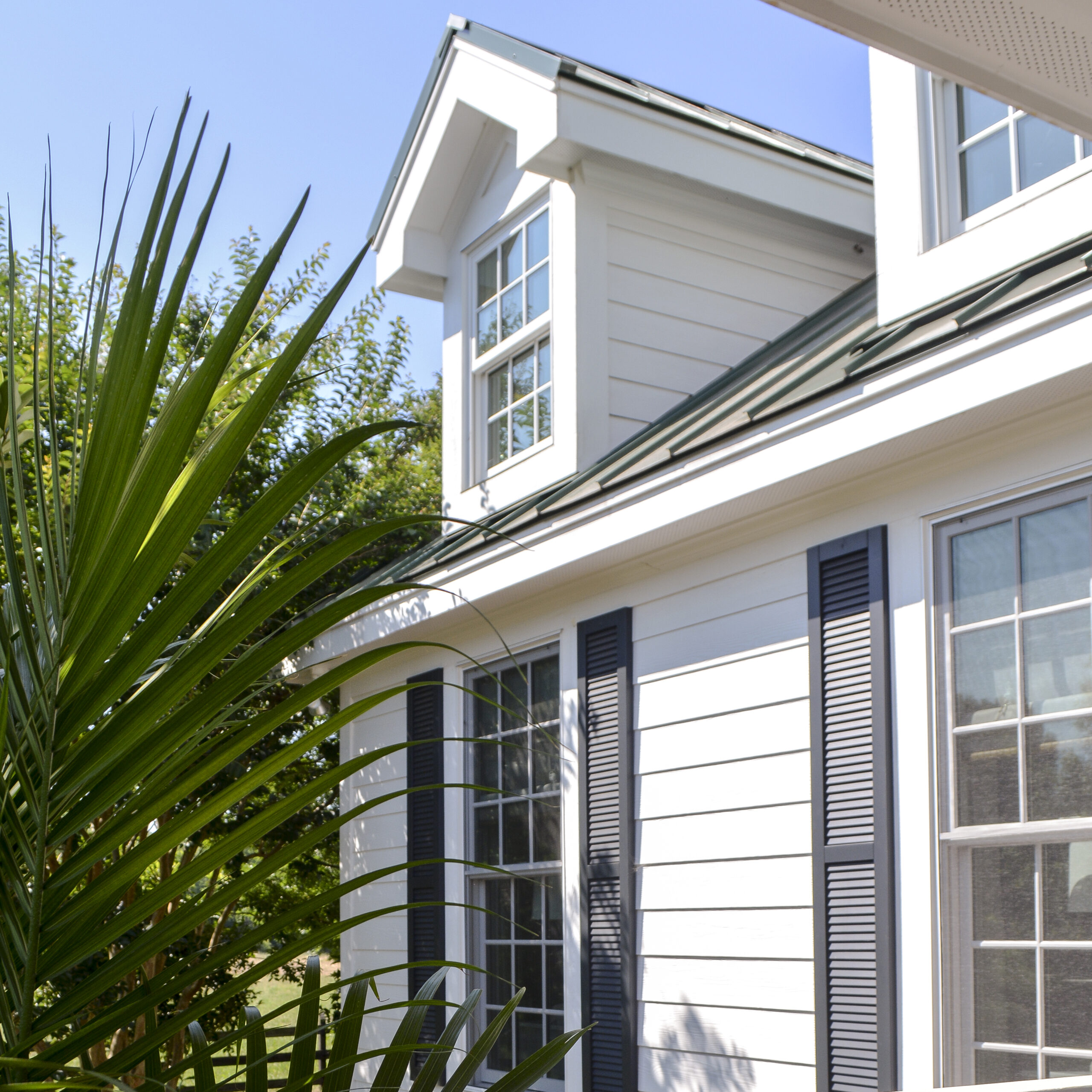 The addition balances the massing of the house, making it feel symmetrical and natural. The new single-story structure appears to be 1.5 stories tall, allowing for dramatic vaulted ceilings and romantic dormer windows that provide unexpected clerestory windows in the primary bedroom.