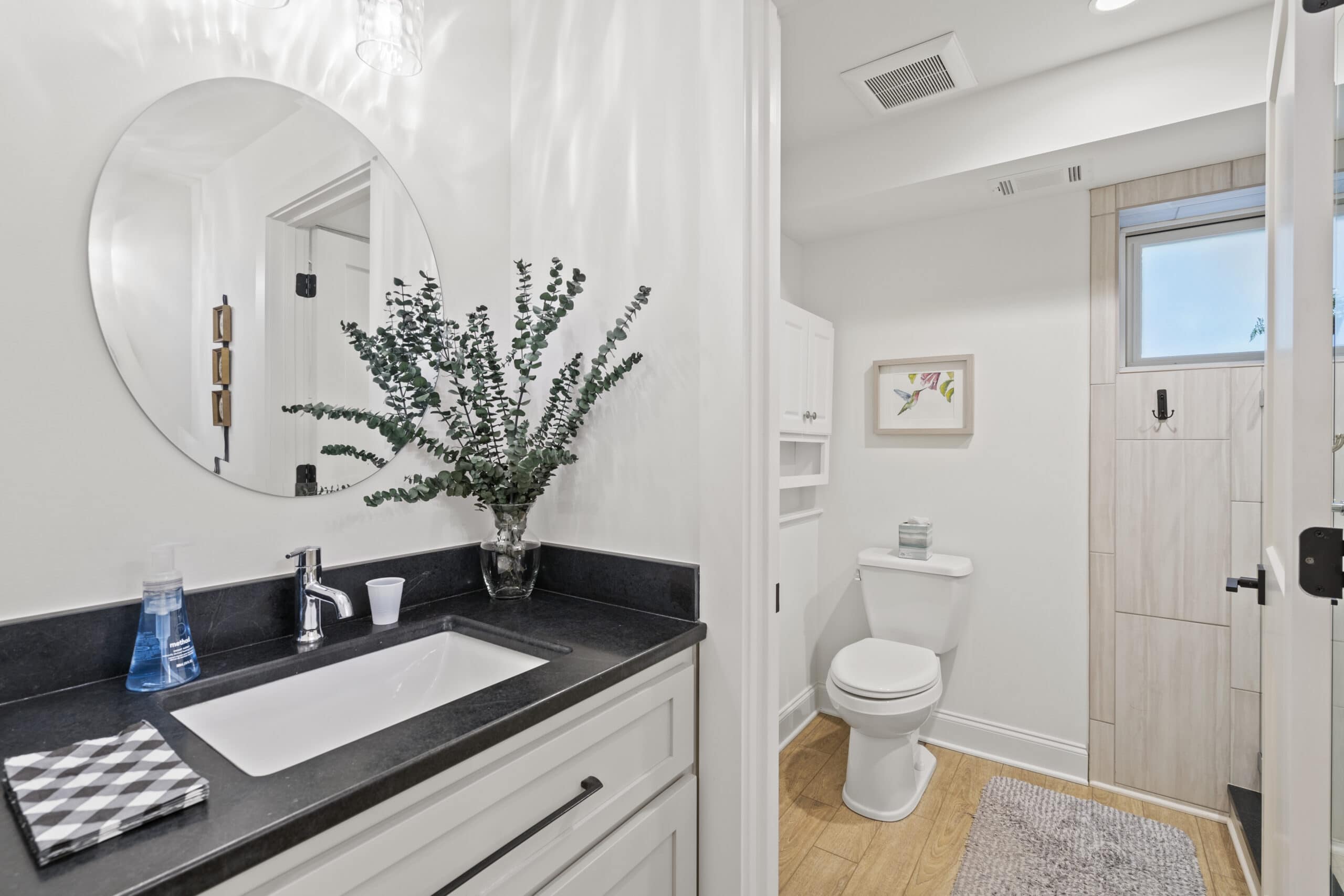 On the lower level of the house, I transformed an unfinished storage room into a modest galley kitchen complete with a range, microwave, refrigerator, sink, and dishwasher. What the kitchen lacks in size, it makes up for in design.