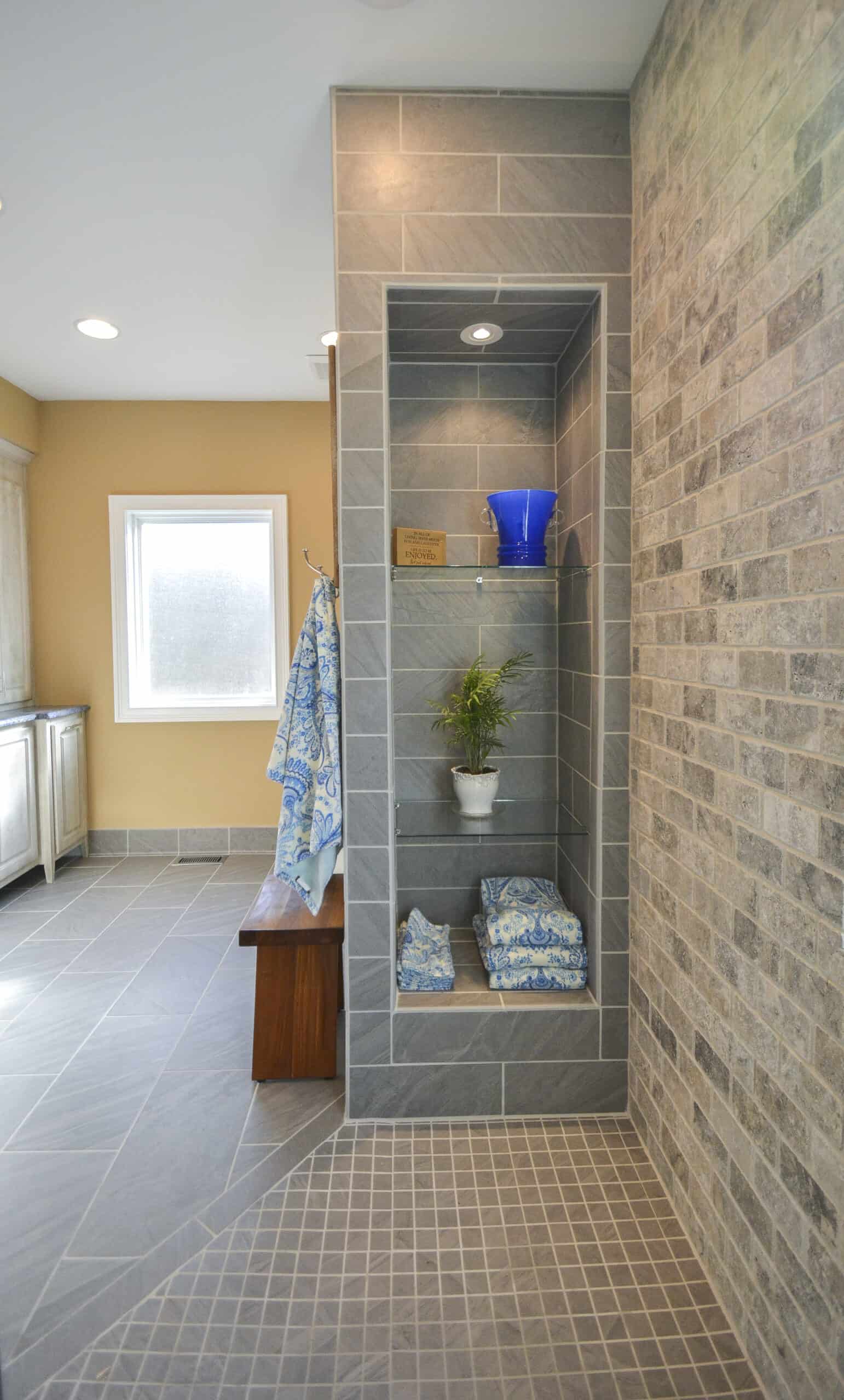 Designed by Kerl Design, this project showcases accessible shower design before it became a trend. Completed nearly 10 years ago for a residence in Anderson, SC, the goal was to create an open-air shower without glass surrounds—bright, airy, and effortless to maintain. The client desired a fresh, inviting bath that allowed light and air to circulate freely, eliminating mold and mildew issues common in enclosed showers.