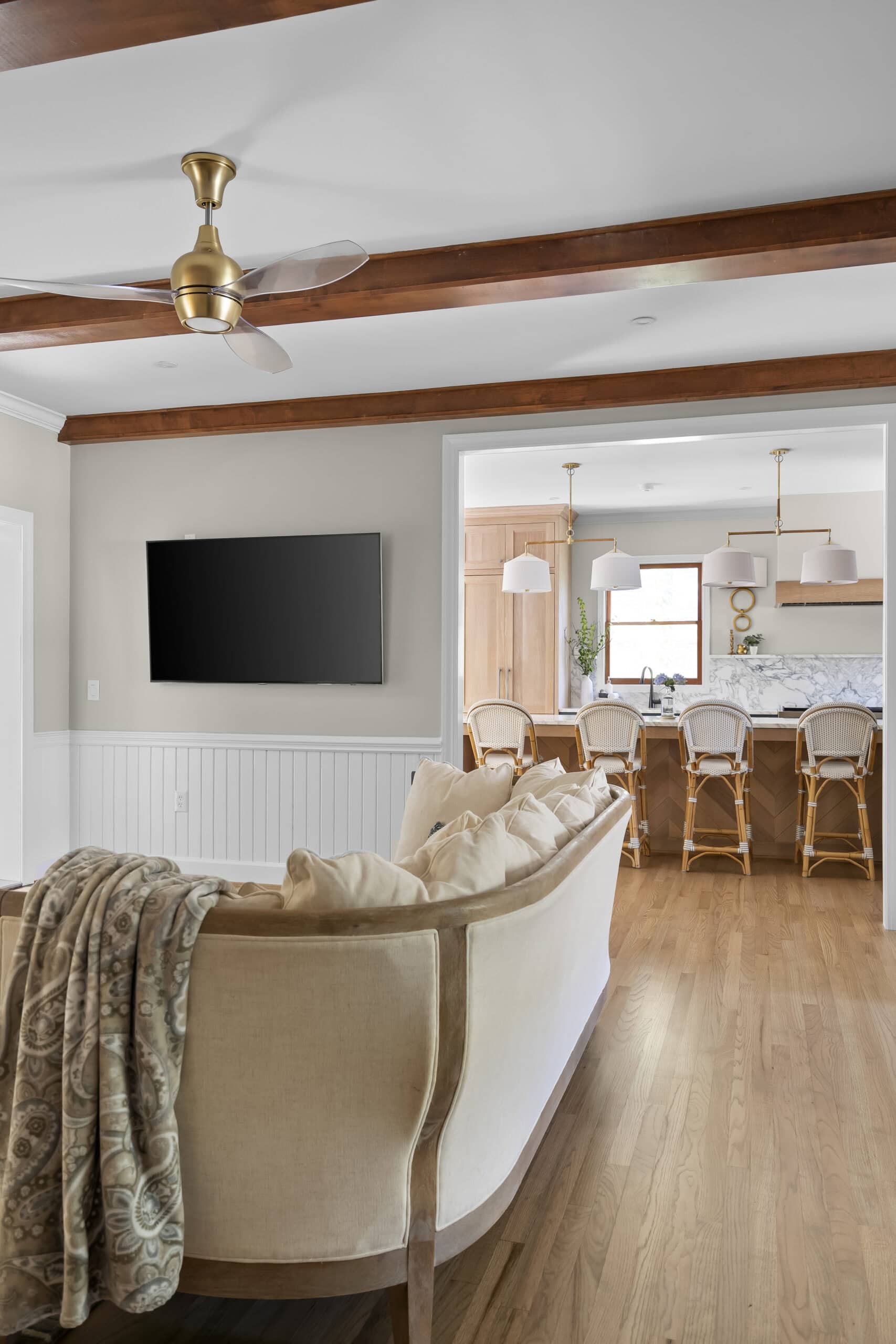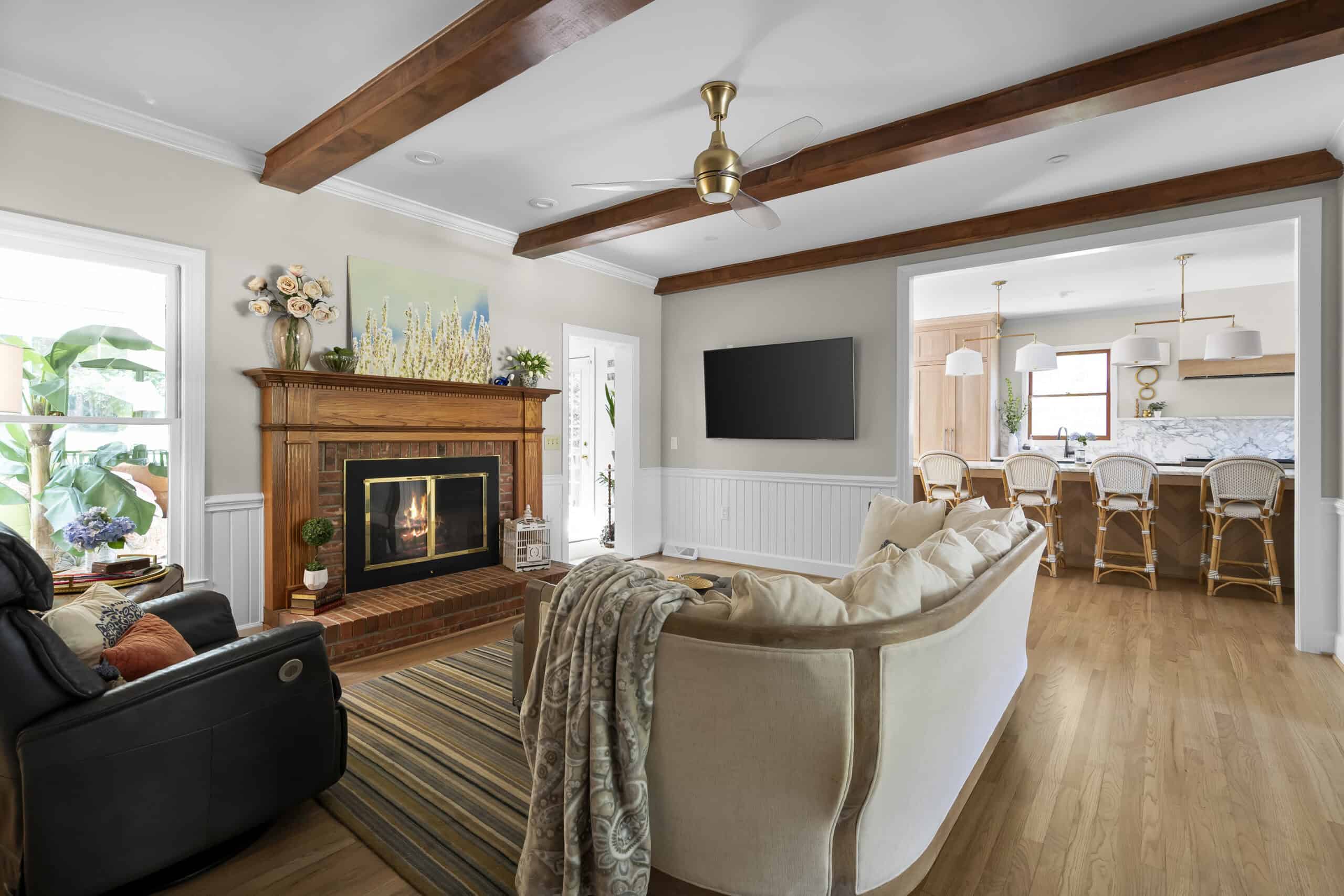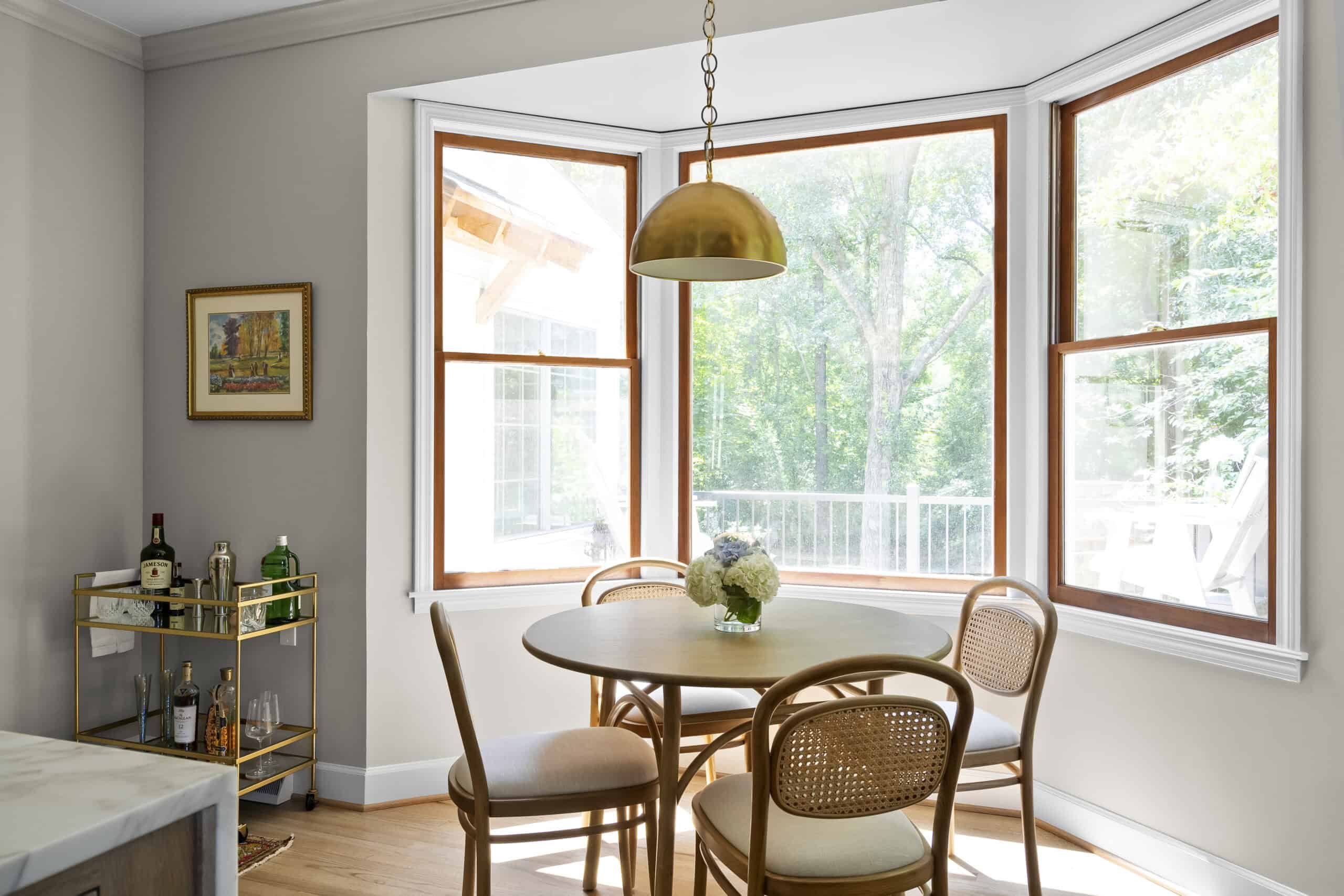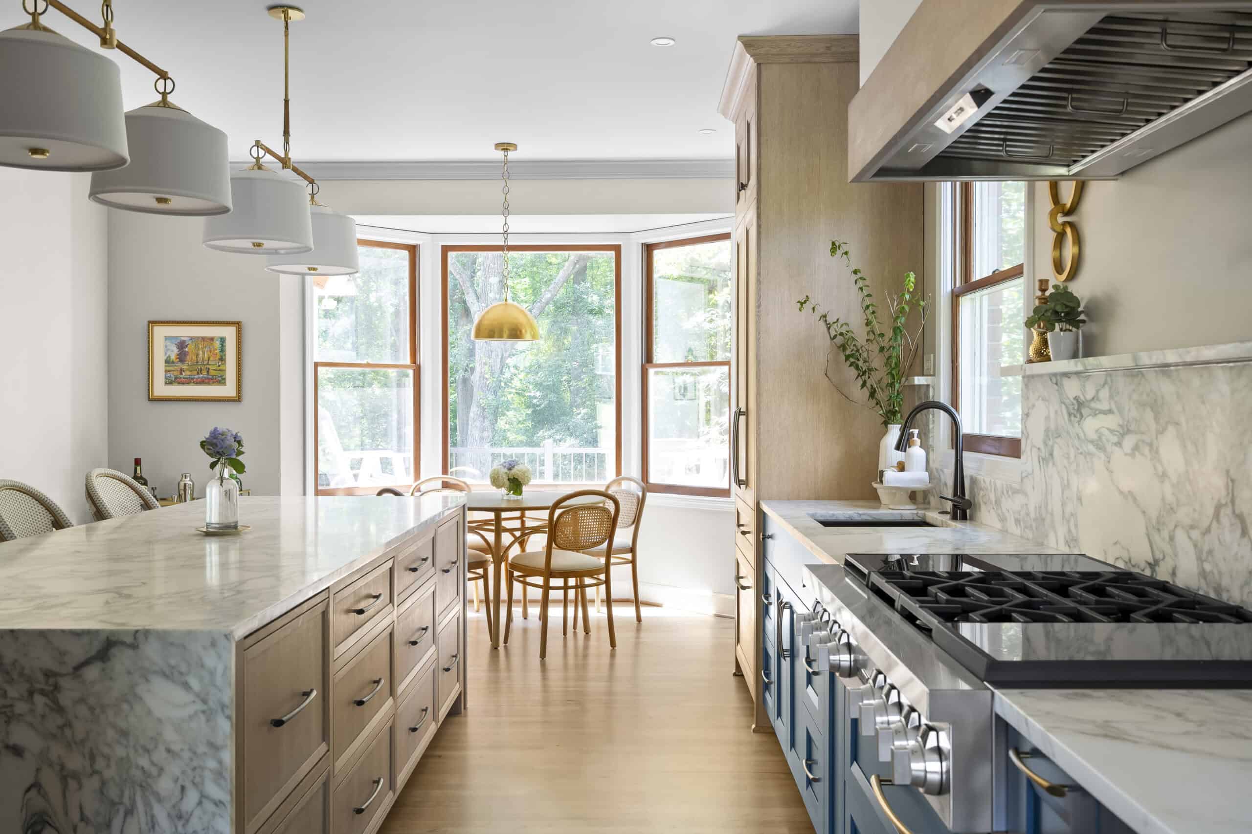 I maintained an eat-in area at the end of the kitchen which provides comfort-height seating along with counter-height seating at the island. This is very important and often overlooked. Kitchens need to have surfaces at multiple heights to serve people with various levels of ability. I design with a universal design approach to accessibility — creating spaces that work for people of all ages and abilities.